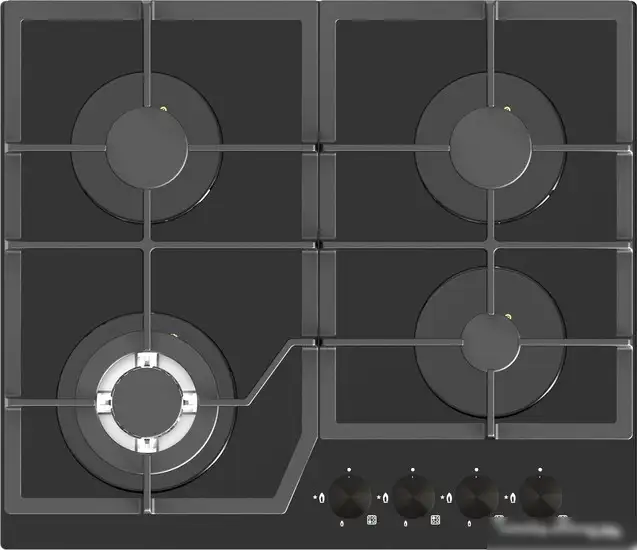 газовая на 4 конфорки, закаленное стекло, мощность: 8000 Вт, автоматический электроподжиг, газ-контроль, решетки: чугун, независимая установка, размеры (ШхГ): 58x50 см