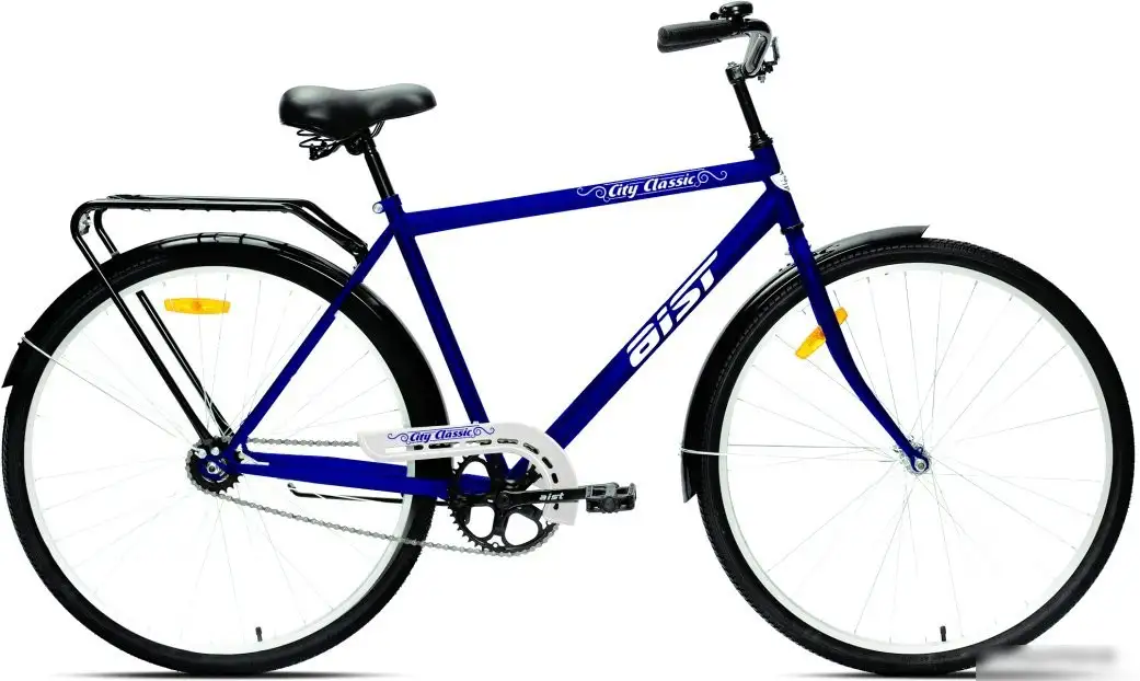 Велосипед AIST 28-130 2023 года — это городской велосипед синего цвета, который подходит для взрослых ростом от 172 до 180 см. Он оборудован прочной стальной рамой без складных частей и имеет один скоростной привод для простоты использования. Колеса диаметром 28 дюймов отлично подходят для прогулок по городу, а протектор полуслик обеспечивает хорошее сцепление на разных покрытиях. Велосипед оснащён комфортным сиденьем Vader, а также передним и задним щитками, багажником, подножкой и защитой цепи, что делает его удобным и практичным. Тормоза — на ножных тормозах с задним тормозом, без переднего тормоза, что упрощает обслуживание. Этот велосипед лёгкий, весит всего 17,1 кг, его легко управлять и он отлично подходит для городских поездок.