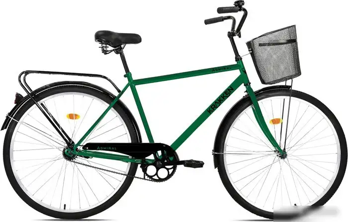 Кракен Admiral — это городской женский велосипед с легкой стальной рамой, который подойдет ростом от 172 до 180 см. Он обладает 1-скоростной трансмиссией и прочными 28-дюймовыми колесами с алюминиевыми ободами и протектором полусликов. Велосипед оснащен надежными тормозами-ножницами и устойчивым вертикальным рулем шириной 560 мм, что обеспечивает комфорт при езде. В комплект входят передний и задний щитки, багажник, корзина, подножка и защита цепи, что делает его удобным для ежедневных поездок. Для удобства есть прогулочное седло с пружинами и пластиковые платформенные педали. Этот модель легко управлять в городских условиях благодаря хорошей устойчивости и прочности. Велосипед прост в эксплуатации и идеально подходит для активных прогулок по городу и поездок на работу. Он отличается небольшим весом — 17 кг, что делает его удобным для транспортировки и хранения.