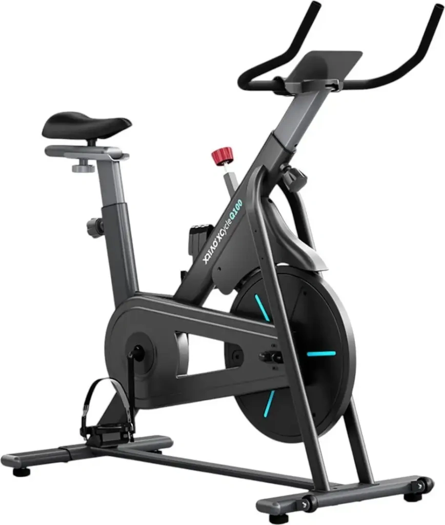 Велотренажер DFC Ovicx B-Q100B имеет вертикальную посадку и магнитную систему нагрузки, которая обеспечивает плавное и тихое тренирование. Он легко регулируется по высоте и горизонтали, чтобы подобрать максимально удобную посадку. Модель оснащена монохромным LCD-дисплеем, показывающим время, скорость, дистанцию и расход калорий. Устройство оборудовано ремнями для фиксации ног и профессиональным рулем с противоскользящим покрытием для комфорта и безопасности. Педали из алюминиевого сплава легко регулируются, а руль и сиденье можно настраивать под рост пользователя. Тренажер имеет транспортировочные ролики для удобства перемещения и компенсаторы неровности пола для устойчивой установки. Встроенные держатели для бутылки и планшета делают тренировки более комфортными и удобными. Максимальная нагрузка до 110 кг, а его вес составляет 27 кг. Благодаря простым функциям и хорошей регулировке, тренажер подойдет для домашних занятий спортом.