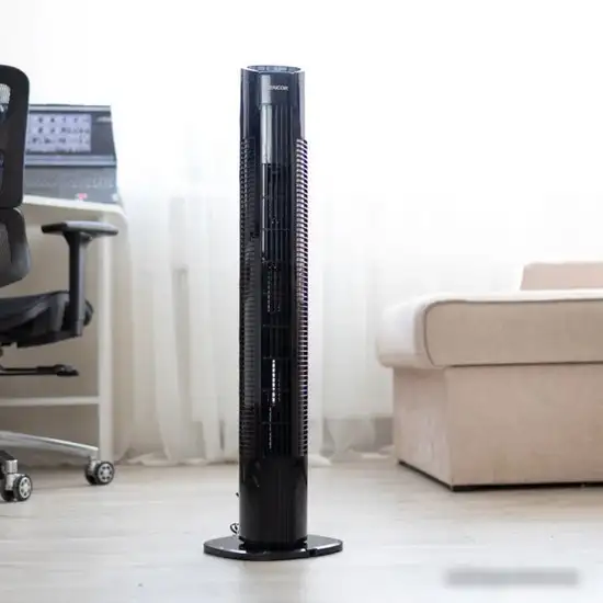Колонный вентилятор Sencor SFT 3113BK предназначен для охлаждения воздуха в комнате. Он легко размещается на полу и имеет мощность 50 Вт, что позволяет быстро создать комфортную температуру. Вентилятор оснащен тремя режимами скорости и сенсорным управлением, а также пультом ДУ для удобства использования. Он обладает функцией регулировки обдува и таймером на 7,5 часов, что помогает заранее настроить работу прибора. Корпус из пластика устойчив к Повреждениям и легко перемещается благодаря небольшой массе — всего 1,99 кг. Устройство не имеет дополнительных функций и не подключается к Wi-Fi, но оно отлично подойдет для стабильной работы в доме или офисе.