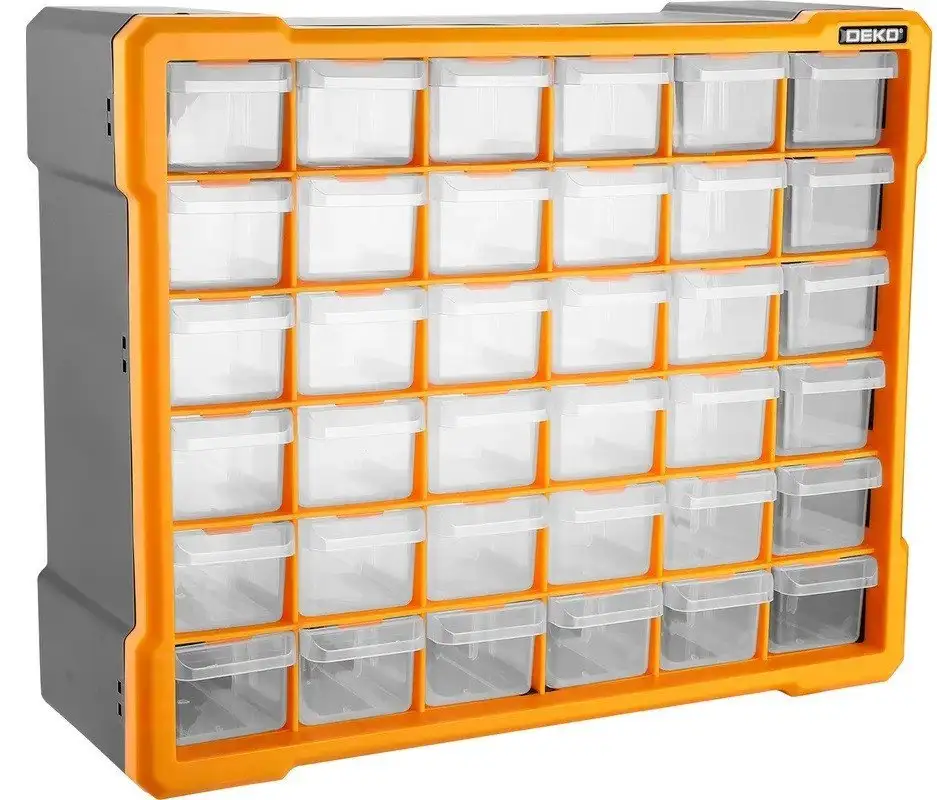 Стенд Deko Smart box 36 085-3006 — это удобное решение для хранения инструментов и мелочей. Он выполнен из прочного пластика и имеет 36 отделений, что позволяет аккуратно организовать ваши вещи. В комплекте есть съемный лоток-вкладыш, который помогает быстро достать нужное — это очень удобно при работе. Стенд оснащен ручкой для переноски, благодаря чему его легко переносить с места на место. Размеры стенда: длина 410 мм, ширина 140 мм, высота 325 мм — он компактный и хорошо помещается в шкафу или грузится в багажник. Вес всего 1,95 кг, что делает его легким и простым в использовании. Его простая конструкция и наличие множества отделений позволяют держать всё под рукой и быстро находить нужное.