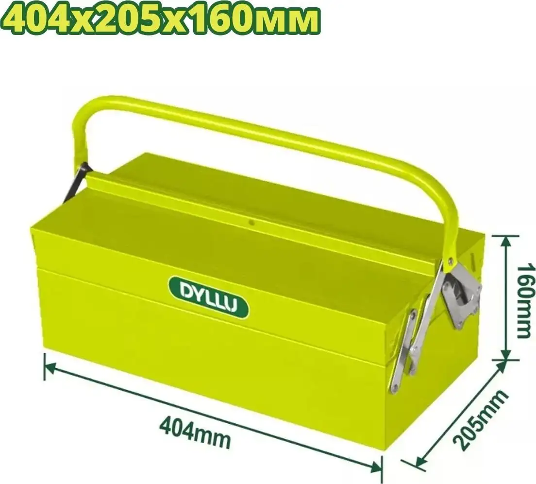 Ящик для инструментов Dyllu DTTB8A33 выполнен из прочной стали и предназначен для хранения различных инструментов. Он имеет три отделения, что помогает удобно организовать и быстро находить нужные предметы. Размеры ящика: длина 404 мм, ширина 205 мм и высота 160 мм, а вес составляет всего 2,55 кг, что делает его легким и удобным для переноски. Цвет салатовый придает изделию яркий и свежий вид. В ящике предусмотрена ручка, благодаря чему его удобно держать и переносить. Этот ящик отлично подойдет для домашних зачистных работ или небольшой мастерской.