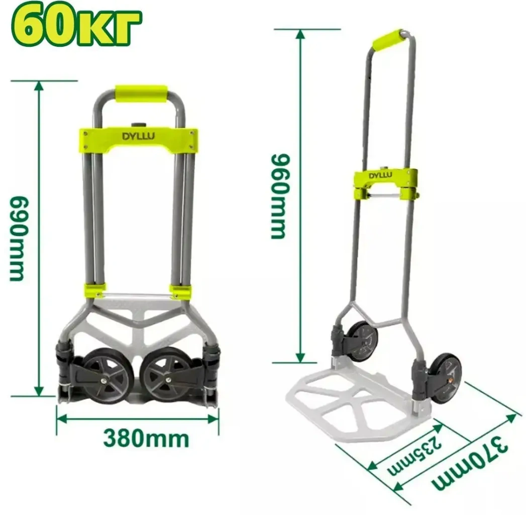 Тележка-платформа Dyllu DTWB9A06 предназначена для перевозки грузов до 60 кг. Ее размеры составляют 370 мм в длину, 380 мм в ширину и 960 мм в высоту, что дает достаточно пространства для различных грузов. В сложенном виде высота сокращается до 690 мм, что облегчает хранение и транспортировку. Колеса диаметром 135 мм обеспечивают стабильное и легко управляемое движение по разным поверхностям. Легкий вес — всего 3,2 кг — позволяет легко переносить и переносить тележку. Конструкция прочная и устойчивая, что обеспечивает надежную работу в любых условиях. Тележка легко складывается, что помогает сэкономить место при хранении. Ее простая и удобная конструкция делает перемещение грузов быстрым и безопасным.