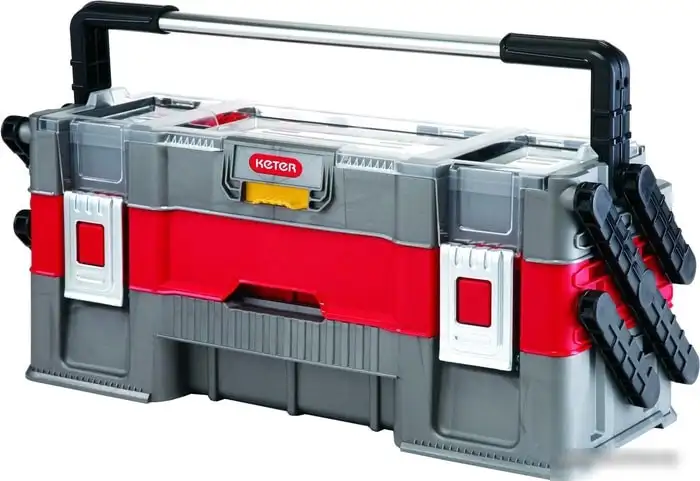 Органайзер Keter 17198033 Canti Trio изготовлен из прочного пластика и имеет три отделения для хранения различных предметов. Он оснащен двумя замками, что помогает надежно зафиксировать содержимое. Благодаря переставным разделителям внутри, вы можете легко организовать пространство по своему усмотрению. В комплекте есть удобная ручка для переноски, что делает его комфортным в использовании переносным. Размеры органайзера — 530 мм в длину, 200 мм в ширину и 230 мм в высоту, а его вес составляет 2,6 кг. Он представлен в красном и сером цветах, что позволяет выбрать подходящий стиль. Этот органайзер подойдет для хранения инструментов, мелких предметов и для организации пространства дома или в мастерской.