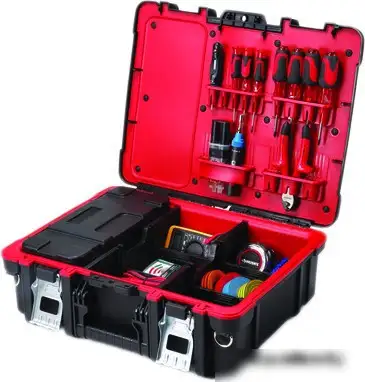 Ящик для инструментов Keter 220232 сделан из прочного пластика и имеет компактные размеры: 480 мм в длину, 378 мм в ширину и 177 мм в высоту. Он оборудован двумя металлическими замками, что обеспечивает надежную защиту содержимого. Внутри ящика есть переставные разделители, которые позволяют удобно организовать инструменты по категориям. Также есть специальные держатели для бит и сверл, что помогает держать все в порядке и быстро находить нужное. Крышка не имеет встроенных контейнеров и съемного лотка, что делает конструкцию более прочной.Ручка из пластика облегчает переноску, а петля для навесного замка позволяет дополнительно защитить инструменты. Этот ящик отлично подходит для хранения и транспортировки различных инструментов, благодаря своей прочности и удобству использования.