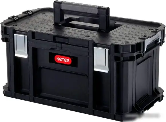Этот ящик для инструментов Keter 17205288 выполнен из прочного пластика и имеет объем 29,6 литров. Он оснащен одним отделением и съемным лотком-вкладышем, что помогает удобно организовать инструменты и мелкие детали. В конструкции есть два металлических замка, которые надежно закрывают ящик и обеспечивают безопасность. Удобная пластиковая ручка позволяет легко переносить ящик с места на место. Размеры ящика — около 54 см по длине, 31 см по ширине и 27,5 см по высоте. Это делает его удобным для хранения и транспортировки инструментов.