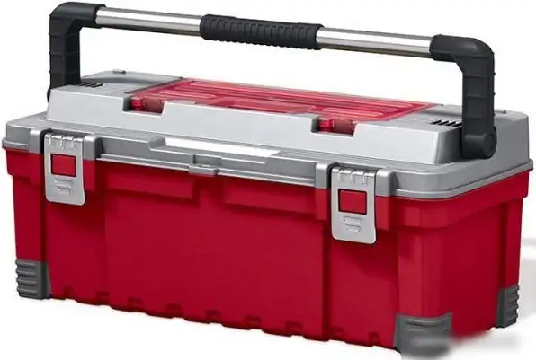Этот ящик для инструментов Keter Hawk 26 сделан из прочного пластика и имеет объем 35,6 литров. Он оснащен одним отделением и съемным лотком-вкладышем, что помогает удобно организовать инструменты. В крышке есть встроенные контейнеры для хранения мелких деталей, а замки из металла обеспечивают безопасность содержимого. У ящика есть удобная металлическая ручка для переноса, но нет колёс или плечевого ремня. Размеры ящика позволяют легко его переносить и хранить в гараже или мастерской. Такой ящик — практичное решение для хранения и транспортировки инструмента, он прост в использовании и долговечен.
