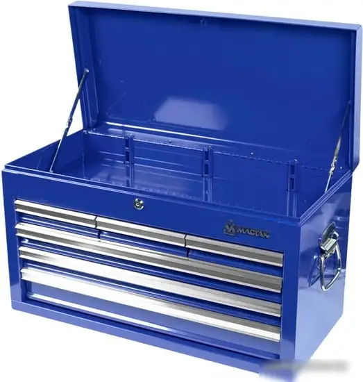 Ящик для инструментов Мастак 511-06570B выполнен из прочной стали и окрашен в синий цвет. Он имеет шесть отделений, что помогает удобно организовать инструменты и мелкие детали. Внутри нет съемного лотка или дополнительных контейнеров, но есть встроенная ручка для переноски, что облегчает транспортировку. Корпус оборудован металлическими замками для надежной защиты содержимого. Размеры ящика позволяют вместить достаточно инструментов: длина 658 мм, ширина 308 мм, высота 370 мм. Вес изделия составляет 22,8 кг, что обеспечивает стабильность и прочность при использовании.