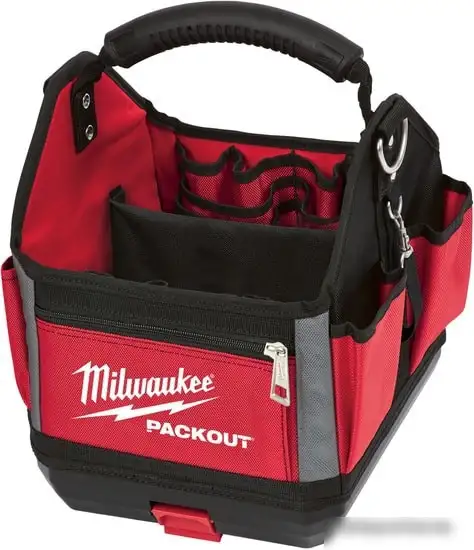 Это сумка для инструментов Milwaukee Packout, которая хорошо подойдет для хранения и переноски различных инструментов. Она выполнена из прочного нейлона и имеет яркий красно-черный дизайн. Размеры сумки составляют 25 см в длину, 28 см в ширину и 32 см в высоту, что позволяет удобно разместить необходимые инструменты. У сумки есть ручка для комфортного переноса, а ее конструкция обеспечивает надежную защиту содержимого. Благодаря прочному материалу, сумка прослужит долго и хорошо справится с повседневной эксплуатацией. Она станет полезным помощником для мастеров и техников.