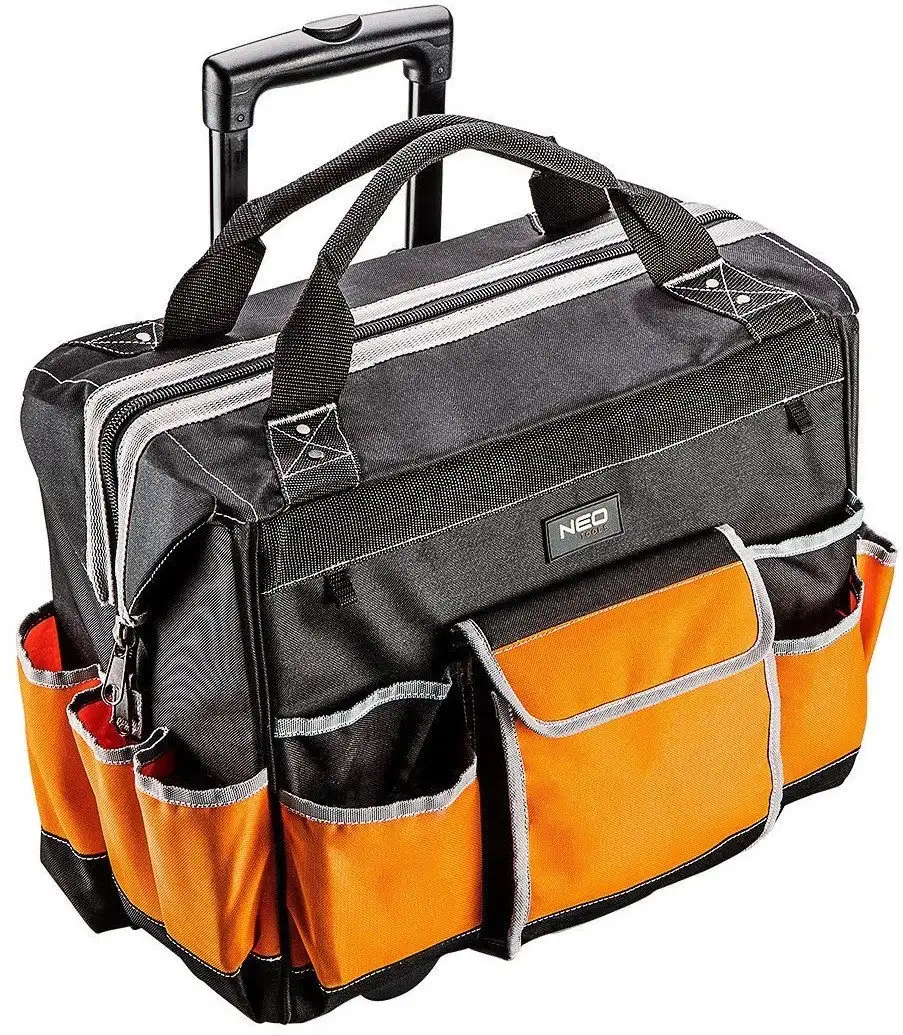 Сумка для инструментов NEO 84-302 — практичный выбор для любого мастера. Она сделана из прочного полиэстера и имеет 17 отделений, чтобы удобно хранить инструмент. В сумке есть ручка и наплечный ремень для комфортной переноски. Размеры: длина 445 мм, ширина 272 мм и высота 350 мм, весит она около 4,3 кг. Удобство обеспечивает просторное внутреннее пространство и надежная конструкция. Благодаря цветам — оранжевому и черному — сумка выглядит современно и заметно. Эта модель отлично подойдет для тех, кто ценит порядок и удобство в работе.