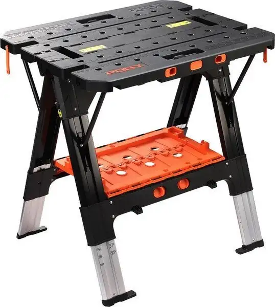 Верстак Pony Jorgensen 60 — прочное и удобное рабочее место. Он выполнен из пластика, что делает его легким и устойчивым. Максимальная нагрузка верстака — 455 кг, что позволяет работать с тяжелыми инструментами и материалами. Размеры: длина 790 мм, ширина 640 мм, высота 890 мм — обеспечивают достаточную рабочую площадь и комфорт. Светлый оранжево-черный дизайн делает его заметным и стильным. Вес верстака всего 16,9 кг, что облегчает его перенос и установку. Он подходит для домашних мастерских и профессиональных условий. Верстак хорошо выдерживает ежедневное использование благодаря прочной конструкции. Его легко очищать и обслуживать, что повышает его долговечность.