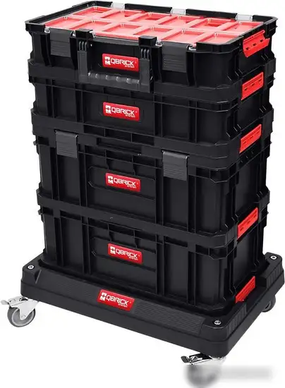 Набор ящиков Qbrick System Two Platform 7in1 Set состоит из прочных пластиковых контейнеров в красном и черном цвете, которые легко собираются и разбираются. В комплект входят ящики с пластическими замками, обеспечивающими надежное закрытие. Вы можете менять их местами благодаря переставным разделителям, чтобы удобно организовать хранение. Имеется ручка из пластика для переноски, а колеса позволяют легко передвигать набор по рабочему месту. Такой набор отлично подходит для хранения инструментов и мелких деталей. Он удобен в использовании и помогает держать все под рукой.