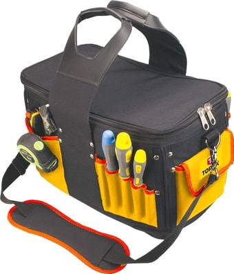 Сумка для инструментов TOPEX 79R440 сделана из прочного полиэстера и предназначена для удобного хранения и переноски инструментов. У нее есть одно большое отделение, которое позволяет разместить много инструментов и держать их в порядке. Сумка выполнена в ярких цветах — желтом и черном, что помогает легко её найти. Ее удобно носить благодаря ручке и плечевому ремню, которые обеспечивают комфорт при переноске. Эта модель подходит для тех, кто часто работает с инструментами и нужен надежный способ их транспортировки.