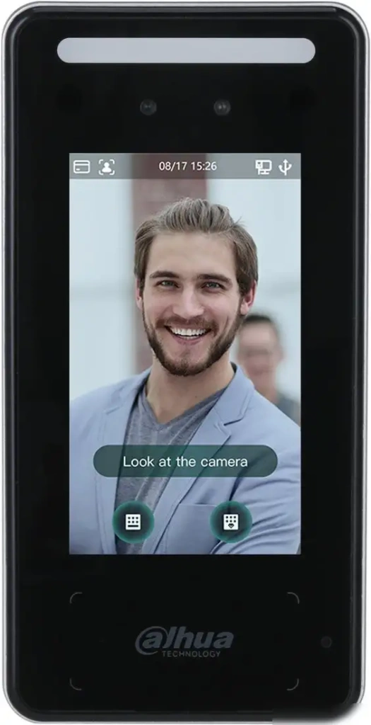 Биометрический терминал Dahua DHI-ASI6213J-MW-V1 — это устройство для домофона с 4.3-дюймовым сенсорным экраном и разрешением 480х272, которое позволяет удобно управлять входом. Он оснащён Wi-Fi и Ethernet для стабильной связи, а также портом USB и RS-485 для подключения дополнительных устройств. В терминале есть функция громкой связи, управление замком и поддержка карт Mifare и распознавания лиц, что обеспечивает быстрый и безопасный доступ. Благодаря встроенной видеокамере с разрешением 2 МП, он передаёт чёткое изображение посетителя. В комплекте есть кодонаборная клавиатура и ночная подсветка для использования в тёмное время суток. Устройство устойчиво к влаге и работает с нагрузками уличных условий, что делает его надёжным выбором для входной зоны. Управлять этим терминалом можно через мобильное приложение, что добавляет удобства для пользователя. Конструкция выполнена из пластика и нержавеющей стали, что обеспечивает долговечность и стильный внешний вид.