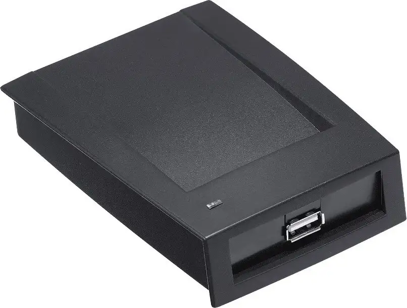 Считыватель Dahua DHI-ASM100-D выполнен в черном цвете и оснащён функцией поддержки бесконтактного доступа для быстрой и удобной проверки. Он подключается через USB, что делает его простым в установке и использовании. Устройство не имеет встроенных микрофонных входов, видеовыходов или Wi-Fi, что обеспечивает надежность и простоту работы. Благодаря компактным размерам (105x75x20 мм) и весу всего 180 г, считыватель легко монтировать и переносить. Он питается от источника питания DC 5V, что позволяет его использовать в различных условиях. Считыватель не имеет дополнительных функций, таких как ночная подсветка или влагозащита, создавая минимальную нагрузку на системы безопасности. Он подходит для организаций, которым нужен простой, надёжный и быстрый способ контроля доступа без лишних функций.