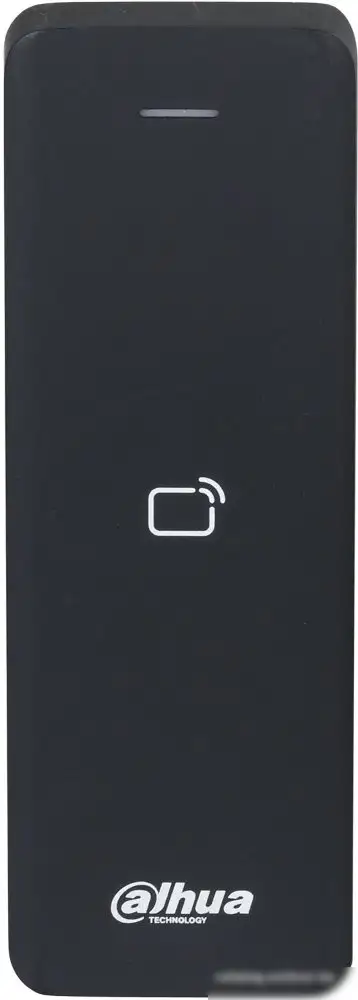 Считыватель Dahua DHI-ASR2100H-D выполнен в черном цвете и предназначен для бесконтактного доступа с помощью ID-карт. Он обладает влагозащитой, что позволяет использовать его в различных условиях и на улице. Устройство подключается через интерфейсы RS-485 и поддерживает протокол Wiegand, что обеспечивает стабильную работу с системами контроля доступа. Считыватель не имеет интерфейсов для аудио или видеосигналов, а также микрофонных и аудиовходов, что упрощает его подключение. Компактные размеры (127x46x20 мм) и вес (104 г) позволяют легко монтировать устройство в любом месте. Для подключения к системе оно использует питание от 12 В. В устройстве отсутствуют дополнительные интерфейсы и функции, которые не требуются для основной задачи — идентификации по бесконтактной карте.