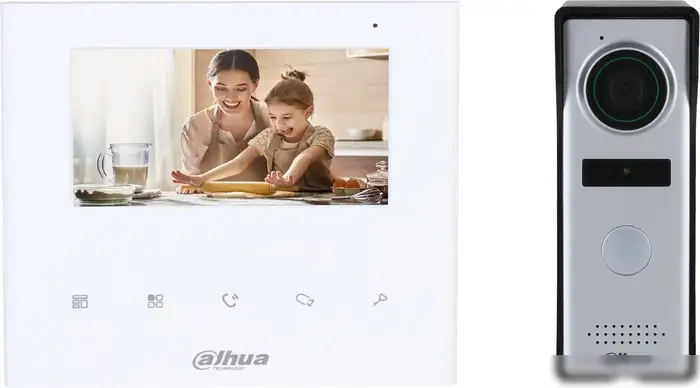 Комплект видеодомофона Dahua DHI-KTA04 выполнен в белом цвете и легко устанавливается на стену. Он оснащён 4.3-дюймовым сенсорным экраном с разрешением 480x272, что обеспечивает удобное управление и просмотр. Камера на вызывной панели имеет разрешение 1280x1024, что позволяет получать чёткое изображение посетителя. Домофон поддерживает подключение до четырёх вызывных панелей по проводной системе. Он обеспечивает громкую связь для общения с посетителем и кнопку управления замком для открытия двери. Также устройство интегрируется с системами интерком, что расширяет возможности связи. Оснащён ночной подсветкой, что позволяет видеть посетителя в темное время. Корпус выполнен из пластика и предназначен для наружного использования благодаря влагозащите. Размеры компактные, устройство удобно монтируется, а питание осуществляется от 12V DC.