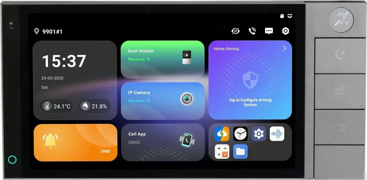 Монитор Dahua DHI-SCP3022B-IBZ — это устройство с 7-дюймовым сенсорным экраном с разрешением 1024x600, которое удобно управлять как кнопками, так и через мобильное приложение. Он подключается к вызывным панелям по витой паре и позволяет подключить до 9 видеомониторов. Встроенная память поддерживает карты microSD до 512 ГБ для записи видео и голосовых сообщений, а возможность записи помогает сохранять важные моменты. Монитор подключается к интернету по Ethernet и Wi-Fi 6/ax, что обеспечивает стабильное соединение. Есть 8 тревожных входов, управление замком и интеграция с системой умный дом повышают безопасность и комфорт. Устройство поддерживает громкую связь для общения с посетителями и имеет встроенный релейный выход для дополнительных устройств. Управление осуществляется кнопками, сенсорным экраном или с мобильного телефона, что делает использование очень удобным. Монитор выполнен из пластика и легко скрыто монтируется. Его размеры и вес позволяют установить его в различных помещениях без проблем.