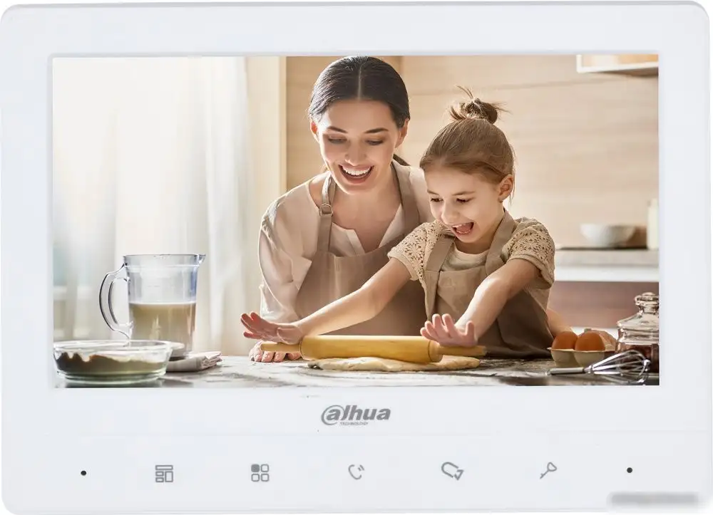 Монитор Dahua DHI-VTH1020J — это 7-дюймовый цветной дисплей с разрешением 1024х600 пикселей, который подходит для просмотра и общения с посетителями. Он подключается по кабелю и не требует Wi-Fi или Ethernet, что упрощает монтаж. Управление осуществляется кнопками, а встроенный микрофон и громкая связь позволяют вести беседу с посетителем в реальном времени. Его корпус выполнен из алюминия, он легкий и компактный, что удобно для установки на стену. Монитор работает от питания DC 12V и легко интегрируется в систему видеодомофонии. Есть возможность наблюдать за входной зоной и общаться, не выходя из дома. Его дизайн подходит для любого интерьера благодаря белому цвету и современному стилю. Этот монитор предназначен для надежной работы и удобства пользователя.