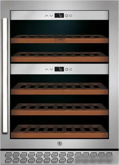 Винный шкаф CASO WineChef Pro 40 — это свободностоящая модель, которая позволяет хранить до 40 бутылок вина. Он имеет две температурных зоны, что удобно для хранения разных видов напитков одновременно. Управление осуществляется электронным способом через расположенный внутри блок, а есть возможность регулировать температуру в диапазоне от 5 до 20 градусов Цельсия. В шкафу есть 5 деревянных полок и вентилятор, который равномерно распределяет холод по всему пространству. Стеклопакет двери помогает удерживать нужные условия внутри.