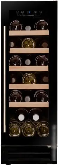 Винный шкаф Dunavox DAUF-19.58B предназначен для хранения до 19 бутылок. Он встраивается в кухонный шкаф и занимает небольшое место — шириной 29.5 см и высотой 81.3 см. Устройство имеет одну температную зону и электронное управление с помощью внутреннего блока. Благодаря компрессорной системе оно быстро и равномерно охлаждает напитки, а вентилятор обеспечивает правильную циркуляцию воздуха. Дверь со стеклопакетом и переносные полки из дерева делают использование удобным и эстетичным. Уровень шума составляет всего 39 дБ, а блокировка от детей обеспечивает безопасность. Внутри есть индикатор температуры, который помогает следить за режимом хранения. Энергоэффективность высокая — расход электроэнергии составляет 118 кВт·ч/год, что позволяет экономно использовать устройство.