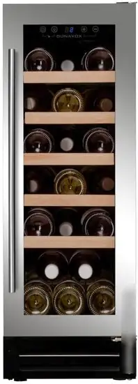 Винный шкаф Dunavox DAUF-19.58SS предназначен для хранения до 19 бутылок вина. Он встраиваемый и занимает минимум места благодаря компактным размерам. Шкаф имеет одну температуруную зону и работает на компрессорной технологии охлаждения, которая быстро и равномерно поддерживает нужную температуру. Электронное управление и своевременная индикация позволяют легко настроить и контролировать условия хранения. Внутри расположены 6 деревянных полок, обеспечивающих бережное хранение бутылок. Стеклопакет двери защищает вино от света, а вентилятор поддерживает равномерное охлаждение. Специальная блокировка от детей обеспечивает безопасность использования. Шум работы составляет всего 39 дБ, что делает его очень тихим при эксплуатации. Устройство также обладает хорошей энергоэффективностью, потребляя всего 118 кВт·ч в год.