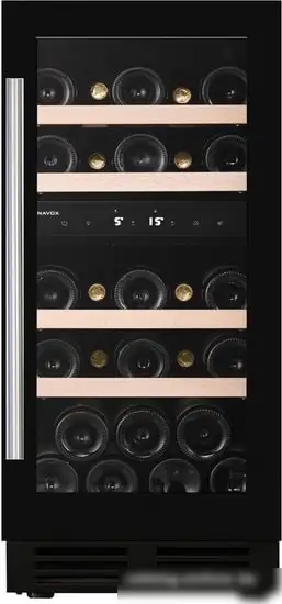 Винный шкаф Dunavox DAUF-32.78DB — это встраиваемое устройство, рассчитанное на хранение до 32 бутылок. Он оснащён двумя температурными зонами, что позволяет отдельно поддерживать нужную температуру для разных видов вина. Охлаждение осуществляется при помощи компрессора, а управление — через электронный блок внутри шкафа. Устройство работает тихо, уровень шума всего 39 дБ, и имеет индикацию текущей температуры. Внутри расположены пять полок из дерева, которые легко регулируются и защищают бутылки. Стеклянная дверь с двойным стеклопакетом помогает сохранять оптимальные условия внутри. Вентилятор обеспечивает равномерное охлаждение, а специальная отделка обеспечит аккуратный внешний вид. Модель потребляет около 125 кВт·ч электроэнергии в год и занимает небольшую нишу благодаря компактным габаритам.