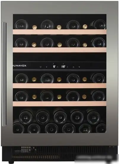 Винный шкаф Dunavox DAUF-39.121DSS встраиваемого типа рассчитан на хранения до 39 бутылок. Он имеет две температурные зоны, что позволяет поддерживать разные условия для разных сортов вина. Шкаф работает на компрессорной технологии и управляется электронным блоком с индикацией и регулировкой температуры (от 5 до 20°C). Внутренние полки сделаны из дерева, что помогает сохранить вино в свежести, а антибактериальный фильтр обеспечивает чистоту воздуха. Благодаря вентилятору внутри создается равномерная циркуляция воздуха, что помогает поддерживать стабильные условия хранения. Шкаф обладает уютной цветовой гаммой — серебристым, и имеет стеклопакетную дверь, которая защищает вино от света. Он тихо работает с уровнем шума 38 дБ, а также оснащен блокировкой для детей для безопасного использования. Идеально подходит для тех, кто ценит правильное хранение вина дома или в ресторане. Его размеры позволяют легко встроить его в кухонный шкаф или отдельную стойку.