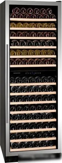 - Два температурных режима — для одновременного хранения разных видов вин.