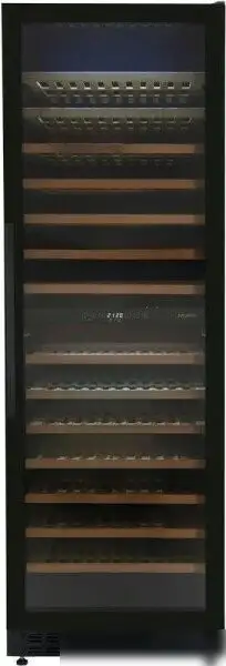 Винный шкаф Hyundai HBWC 1765 DC — это встроенное устройство, созданное для хранения 171 бутылки вина. Он оборудован двумя температурными зонами с электронным управлением и индикацией, что позволяет точно настраивать температуру в диапазоне 5–20°C. Компрессорная технология обеспечивает стабильное охлаждение, а стеклопакетная дверь защищает вино от внешних факторов и добавляет современный стиль. Внутри расположены 14 деревянных полок, которые легко перенавешиваются для удобства. Защиту от детей обеспечивает замок, а блок управления размещён внутри шкафа для простого доступа. Корпус покрыт черным цветом, а полезный объём холодильной камеры составляет 415 литров. Кабина легко интегрируется в интерьер благодаря компактным размерам — шириной 59,5 см и высотой 177 см. Шкаф помогает поддерживать оптимальные условия для хранения и создает комфортный климат для вашего вина.