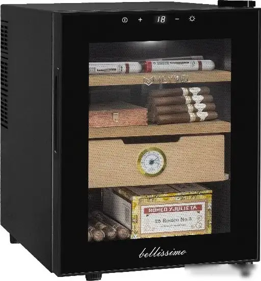 Винный шкаф Meyvel MC-33BT — это независимый прибор с термоэлектрической системой охлаждения, который создаст уютную атмосферу для ваших вин. Он оснащён двумя полками из дерева, что помогает сохранять напитки в хорошем состоянии. Благодаря электронному управлению вы легко регулируете температуру в диапазоне 10–18 °C и влажность для оптимальной защиты вин. Вертушечный уровень шума всего 25 дБ позволяет шкафу работать тихо, не мешая вам. Полезный объём холодильной камеры составляет 33 литра, а узкий корпус (34 × 51 × 46.8 см) позволяет разместить его в небольшом пространстве. Стеклянная дверь с двойным стеклопакетом обеспечивает хорошую изоляцию и обзор содержимого. Отсутствие вентилятора делает работу устройства ещё тише. Шкаф легко интегрировать в интерьер благодаря компактным размерам и простому управлению с помощью электронных настроек.