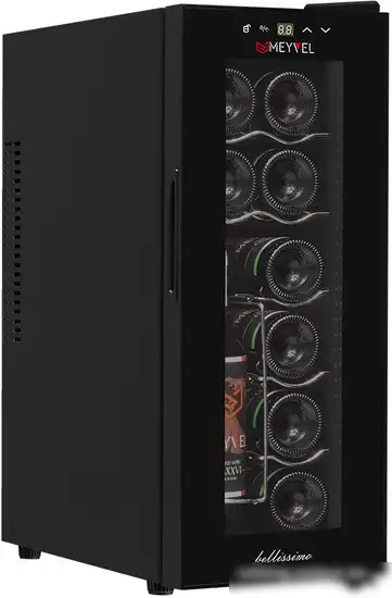 Винный шкаф Meyvel MV12-TBD1 — это удобное решение для хранения до 12 бутылок. Он выполнен в черном цвете и имеет отдельно стоящий дизайн. В шкафу есть одна зона для хранения, которую можно регулировать в диапазоне от 10 до 18°C, что позволяет поддерживать оптимальный климат для вина. Управление осуществляется через электронный блок расположенный снаружи, а на дисплее отображается текущая температура. Шкаф работает тихо, уровень шума составляет всего 38 дБ, что не мешает вашему отдыху. Внутри есть пять металлических полок, а стеклянная дверь обеспечивает хороший обзор. Благодаря вентилятору внутри создается равномерное охлаждение без резких колебаний температуры. Шкаф легко помещается в небольшие пространства благодаря компактным размерам: шириной 25.2 см и высотой 63.5 см. Встроенная автоматическая блокировка от детей повышает безопасность использования. Такой шкаф отлично подойдет для тех, кто ценит комфорт и правильное хранение винных запасов.
