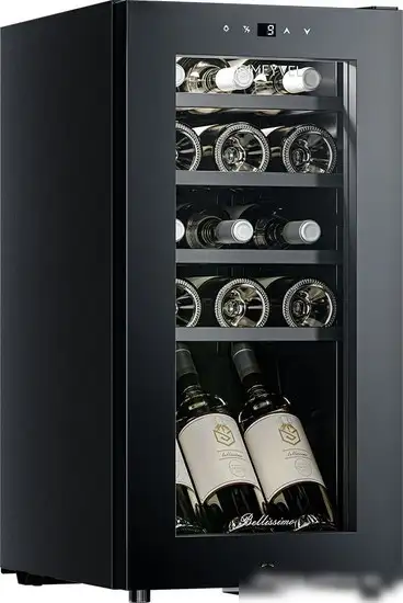 Винный шкаф Meyvel MV15-KBF1 — это отдельностоящее устройство, предназначенное для хранения до 15 бутылок. Он оснащен одной температурной зоной с электронным управлением, позволяющим точно регулировать температуру от 5 до 20 °C и влажность для комфортного хранения вина. Корпус выполнен в черном цвете с стеклопакетом на двери, что обеспечивает стильный внешний вид и сохранность содержимого. Полки сделаны из дерева, что помогает бережно обращаться с бутылками. Устройство работает тихо, создавая уровень шума всего 38 дБ, и расходует не более 120 кВт·ч электроэнергии в год. Благодаря сигналу о неисправностях и блокировке от детей, он обеспечивает безопасность и надежность. Компактные размеры позволяют легко установить шкаф в любую подходящую нишу, а управление осуществляется через электронную панель с функциями регулировки температуры и влажности. Этот винный шкаф отлично подходит для любителей вина, желающих сохранить напитки в оптимальных условиях.