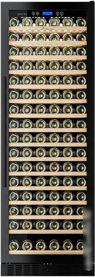 Винный шкаф Meyvel MV171-KBT1 подходит для хранения до 186 бутылок вина и легко встраивается в вашу кухню, занимая минимальное пространство. Он оснащён одной температурной зоной с электронным управлением, которое позволяет точно регулировать температуру от 5 до 18 °С и держать её в постоянном режиме. Благодаря компрессорной системе охлаждения шкаф быстро охлаждает и поддерживает нужную температуру, а вентилятор равномерно распределяет холод. Полки выполнены из дерева, что помогает сохранить качество и аромат вина. Внутри есть антибактериальный фильтр, обеспечивающий чистоту воздуха для хранения напитков. Дверь из стеклопакета защищает бутылки от внешних воздействий и дополнительно украшает дизайн. Уровень шума всего 45 дБ, что обеспечивает комфортное использование без лишнего шума. Электронное управление расположено внутри, есть индикация температуры, что помогает быстро проверить текущие настройки. Шкаф работает экономично, расходуя всего 202 кВт·ч в год, и легко управляется благодаря встроенному дисплею. Его размеры позволяют легко разместить его в нише, а вместимость и функциональность делают его отличным решением для ценителей вина.