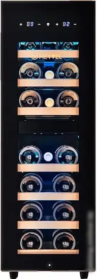Винный шкаф Meyvel MV19-KBF2 предназначен для хранения до 19 бутылок. Он имеет две температурных зоны, что позволяет хранить разные виды вина при оптимальных условиях. Шкаф работает на компрессорной системе охлаждения и управляется с помощью электронного дисплея снаружи, который показывает и регулирует температуру в диапазоне от 5 до 18 °C. Благодаря вентилятору равномерно распределяет холод внутри, а антибактериальный фильтр помогает сохранять чистоту воздуха. Коробка оснащена стеклопакетной дверью, которая сохраняет стабильные условия хранения и защищает от внешних воздействий. Полки выполнены из дерева, что придает эстетичный вид и заботится о ваших вине. Шкаф работает тихо — уровень шума составляет всего 45 дБ. При этом он потребляет около 138 кВт·ч электроэнергии в год, что делает его энергоэффективным. Компактные размеры (29,5 см ширина и 57 см глубина) позволяют легко разместить его в любой комнате. Он легкий — весит всего 27 кг, и его легко переносить и устанавливать.