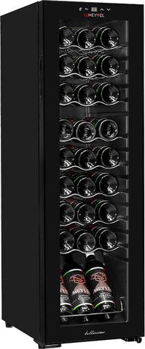 Винный шкаф Meyvel MV27-CBD1 предназначен для хранения до 27 бутылок вина. Он работает тихо, уровень шума составляет всего 45 дБ, что обеспечивает комфортное использование. В шкафу есть одна температурная зона с возможностью регулировки от 5 до 18 °C, что помогает поддерживать оптимальные условия для хранения вин. Электронное управление расположено снаружи, и есть индикация температуры для точного контроля. Устройство создаёт полезный объём в 76 литров и оснащено 9 металлическими полками, которые легко регулируются. Материал дверей – стеклопакет, а конструкция надежна и удобна. Он блокируется от детей и автоматически сообщает о неисправностях. Благодаря энергоэффективности 136 кВт·ч в год, шкаф экономит электроэнергию. Встроенные функции делают его удобным и безопасным решением для хранения вина дома.