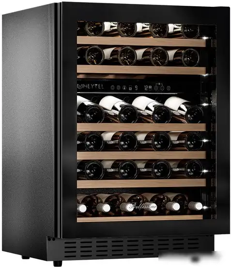 Винный шкаф Meyvel MV46NH-KBT2 отлично подходит для хранения до 46 бутылок вина. Он имеет две температурные зоны, что позволяет хранить разные виды напитков при подходящей температуре. Управление осуществляется через электронный блок внутри шкафа, есть дисплей для индикации и регулировки температуры в диапазоне от 5 до 20 °C. Шкаф работает с низким уровнем шума — всего 40 дБ, и оснащён блокировкой от детей для безопасности. Благодаря вентилятору равномерно распределяет холод по камере. Полки сделаны из дерева, а дверь выполнена из стеклопакета — это сохраняет внутри стабильную температуру и защищает от ультрафиолета. В шкаф встроена система антибактериальной очистки и сигнализация о неисправностях. Чтобы было легко подобрать место для установки, размеры шкафа — 59,5 см в ширину, 57,8 см в глубину и 82 см в высоту. Он легко устанавливается в кухню и не занимает много места, сохраняя комфорт и свежесть вашего вина.
