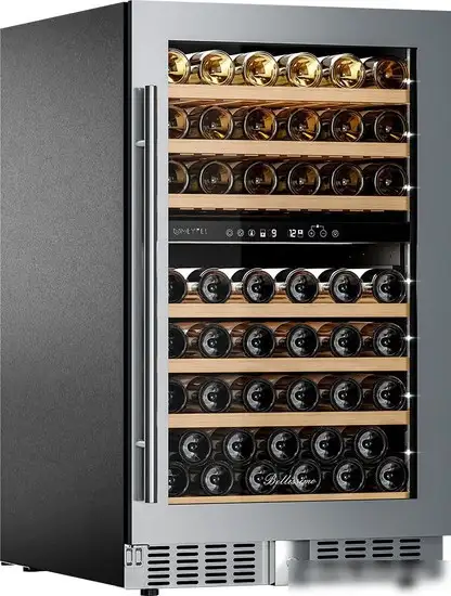 - Два температурных режима — обеспечивает подходящие условия для разных видов вина.