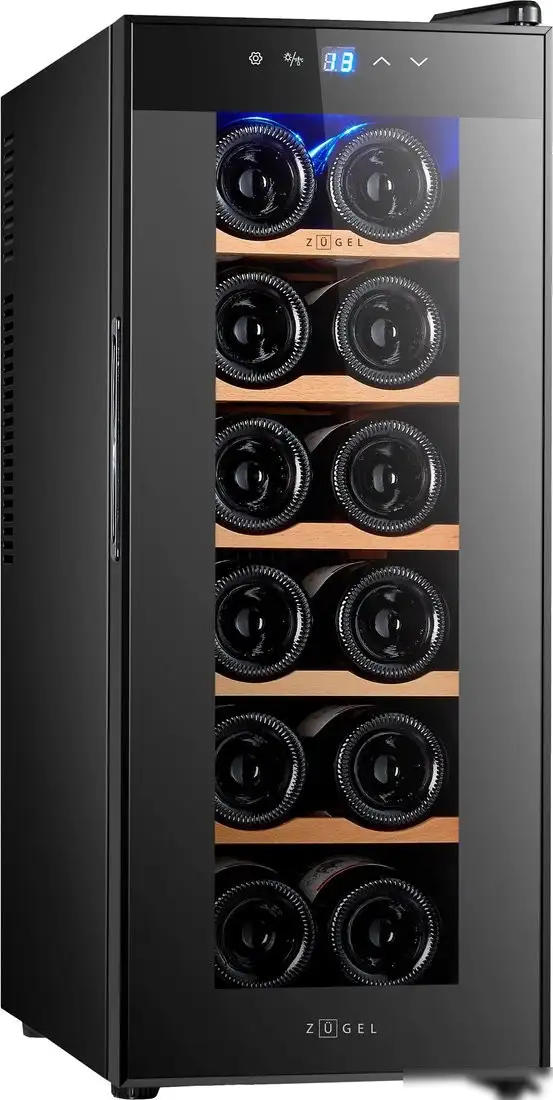 Винный шкаф ZUGEL ZTWF122B произведён в Китае и предназначен для хранения до 12 бутылок вина. Он имеет одну температурную зону с регулируемым диапазоном от 8 до 18 °C, что позволяет поддерживать оптимальные условия для разных видов вин. Шкаф выполнен в черном цвете и оборудован стеклопакетом на двери, который защищает вино от ультрафиолетовых лучей. Внутри расположены 6 полок из дерева, создающих аккуратное и удобное хранение блюд. Управление осуществляется через сенсорную панель снаружи, что позволяет легко контролировать температуру. Благодаря вентиляции и тихой работе с уровнем шума всего 33 дБ, он не будет мешать в помещении. Лёгкий и компактный, этот шкаф отлично впишется в любой интерьер и обеспечит безопасное хранение любимых вин.