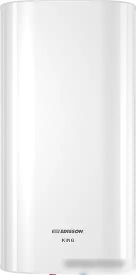 Накопительный электрический водонагреватель Edisson King 50 V имеет вертикальную и настенную установку, что облегчает его размещение в помещении. Он нагревает воду с помощью электричества и работает на однофазном электропитании. Объем бака равен 50 литрам, а мощность — 2 кВт, что обеспечивает быстрый нагрев за 78 минут при температуре до 65°C. Внутреннее покрытие бака выполнено из нержавеющей стали, что помогает защитить его от коррозии и обеспечить долговечность. Пенополиуретановая теплоизоляция сохраняет тепло, уменьшая расходы энергии. Водонагреватель оснащен предохранительным клапаном и выдерживает давление до 6 бар. Он не требует управления через дисплей или регулировки температуры, что упрощает использование. Размеры изделия — 43.4 см в ширину, 23 см в глубину и 84.3 см в высоту, вес составляет 12,6 кг. В комплект входит сам водонагреватель, предохранительный клапан, инструкции, анкеры и упаковка.