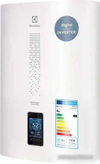 Электрический накопительный водонагреватель Electrolux EWH 30 SmartInverter имеет удобный настенный монтаж и объем 30 литров, что идеально подходит для небольших семей или квартир. Он работает от однофазной электросети и способен быстро нагревать воду до 75°C за 60 минут, обеспечивая комфортное использование. Уникальная функция — удалённое управление, что позволяет удобно регулировать температуру и управлять нагревателем через приложение. В баке использован сухой ТЭН из нержавеющей стали, который служит дольше и проще в уходе. Для безопасности есть термостат и давление до 6 бар, а также защита от перегрева. Внутреннее покрытие и теплоизоляция обеспечивают эффективную работу и экономию электроэнергии.
