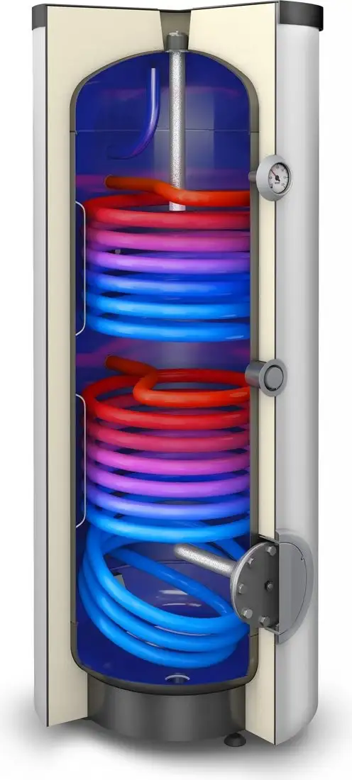 Бойлер косвенного нагрева Galmet BigSolPartner SG-W(S)B 500 Skay FL 1EX предназначен для нагрева воды в больших объемах. Он располагается вертикально и устанавливается напольным способом. Максимальный объем бака — 496 литров, что подходит для больших домов и предприятий. Мощность нагрева составляет 48 кВт, обеспечивая быструю и эффективную работу. Внутреннее покрытие бака — эмаль, оно защищает от коррозии и продлевает срок службы устройства. Теплоизоляция помогает сохранять тепло и снижать энергопотребление. Вы можете нагреть воду до 110 °C, что удобно для различных нужд. Бойлер окрашен в серый цвет и имеет габариты: ширина и глубина по 75,5 см, высота — 195 см. Вес устройства — 216 кг. Управление без дисплея, что делает конструкцию проще и надежнее.