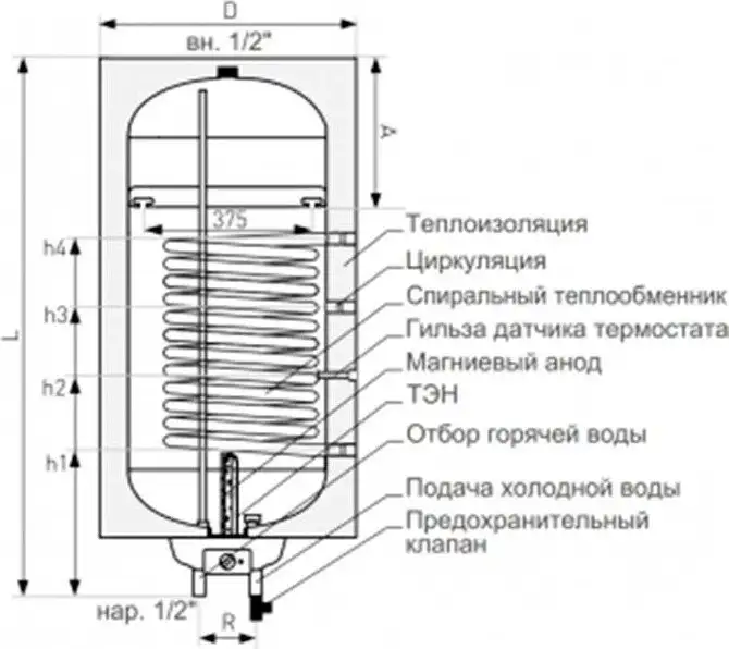 - Эмалевое покрытие бака — увеличивает срок службы и защищает от коррозии