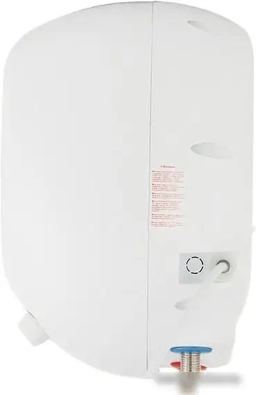 Это накопительный электрический водонагреватель Haier ES8V-Q1(R), который устанавливается над мойкой. Он имеет объем 8 литров и мощность 1,5 кВт, что позволяет быстро нагревать воду до температуры до 75°C. Управление нагревом осуществляется вручную, без дистанционных функций. Внутреннее покрытие бака — эмаль, что защищает его и увеличивает срок службы. Он рассчитан на давление до 7 бар, а для безопасной работы есть встроенный термостат. Размеры прибора компактные: ширина 28,3 см, глубина 25,5 см и высота 38,7 см, вес около 5,5 кг. Этот водонагреватель подходит для кухни и легко вписывается в любой интерьер.