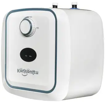 Накопительный электроводонагреватель Kotitonttu Salmi KMU-10 предназначен для установки под мойку. Он имеет вертикальный и настенный монтаж, что позволяет экономить место. Внутри находится 10 литровой объем, он нагревает воду с помощью электросети мощностью 1,5 кВт. Благодаря быстрой системе нагрева, вода достигает необходимой температуры за 21 минуту. Устройство регулирует температуру для комфортного пользования, однако не задает конкретное значение. В баке используется эмалевое покрытие, и внутри отсутствует сухой ТЭН, что увеличивает долговечность. В систему встроен термостат безопасности и УЗО для защиты пользователя. Конструкция компактна — размеры 33,5х28,5х33,5 см, весит всего 6,5 кг. Благодаря этим функциям, водонагреватель обеспечивает безопасное и эффективное нагревание воды для кухни.