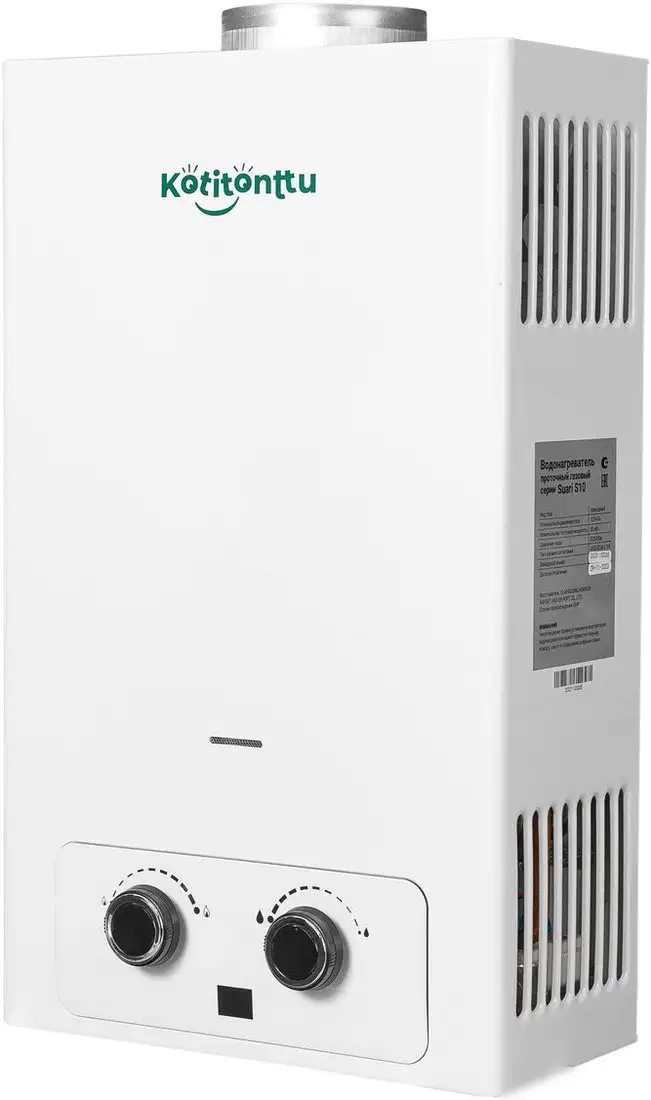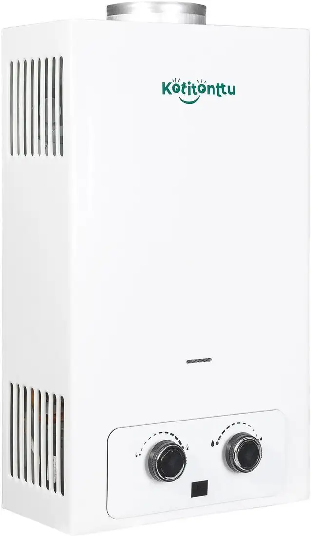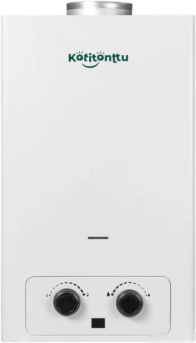 Газовая колонка Kotitonttu Suari S12 обеспечивает быстрый нагрев воды с производительностью 12 литров в минуту. Она устанавливается вертикально на стену и не требует удаленного управления. Колонка подключается к газу и работает с мощностью 24 кВт, что позволяет добиться максимальной температуры нагрева до 65°C. Вы можете легко регулировать температуру воды по своему желанию, а встроенный термостат обеспечивает безопасность при использовании. Благодаря нижней подводке воды установка проста и удобна. Колонка способна выдерживать давление до 8 бар, что подходит для большинства систем водоснабжения. Размеры устройства компактны: ширина 35 см, глубина 18,2 см, высота 61 см, а вес всего 9 кг. Цвет — белый, её легко вписать в любой интерьер. Это надежное и экономичное решение для горячего водоснабжения в доме или в даче.