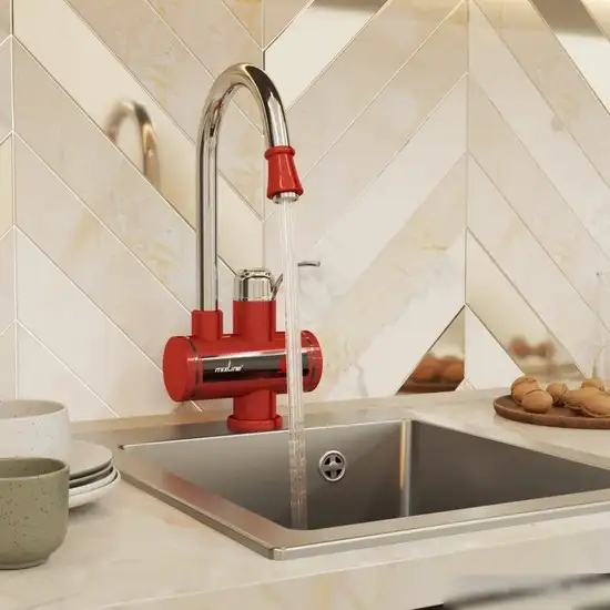 Проточный электрический водонагреватель-кран Mixline WH-003 предназначен для установки на мойке или столешнице и обеспечивает быстрый нагрев воды. Он работает от однофазного электросети с мощностью 3,3 кВт, что позволяет быстро подавать горячую воду, когда она нужна. Максимальная температура нагрева составляет 60 °C, и её можно регулировать в зависимости от ваших потребностей. Устройство оборудовано дисплеем и системой УЗО для дополнительной безопасности при использовании. Кран имеет компактные размеры: шириной 21 см, глубиной 15 см и высотой 34,5 см, и весит всего 1,3 кг. Цвет - яркий красный с хромированными элементами, что добавит современности вашей кухне.