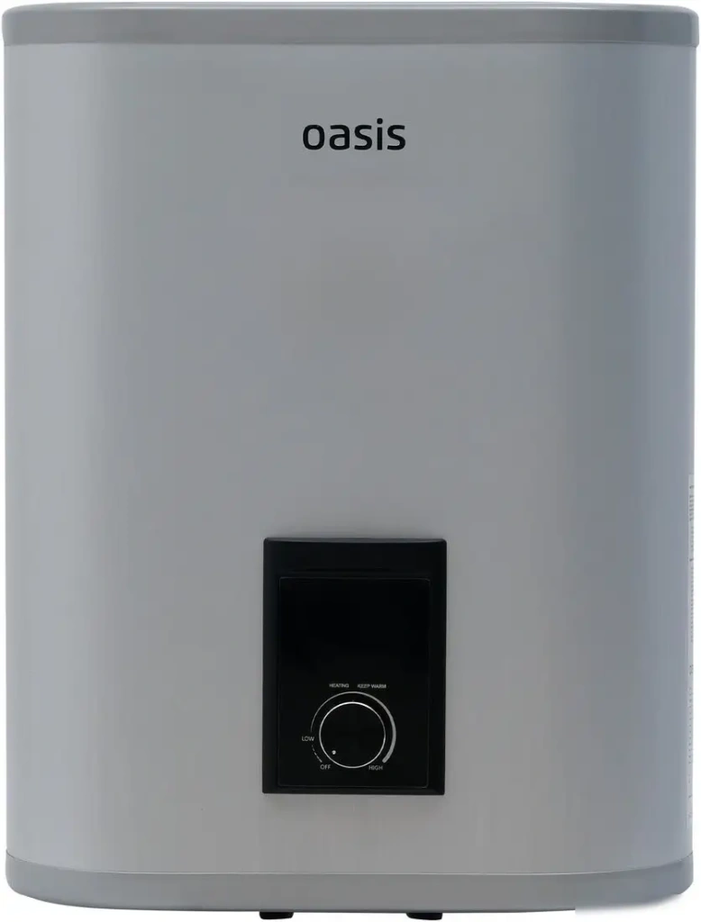 Накопительный электроводонагреватель Oasis 30G предназначен для нагрева воды в доме с помощью электроэнергии. Он имеет вертикальную и настенную установку, занимает мало места и легко монтируется. Объем бака составляет 30 литров, что подходит для семьи из двух человек. Мощность устройства — 2 кВт, оно быстро нагревает воду до 75 °C и позволяет регулировать температуру по желанию. В баке используется нержавеющая сталь, что обеспечивает долговечность и безопасность. Теплоизоляция толщиной 17,5 мм помогает сохранять тепло и уменьшает расход энергии. Надежность устройства обеспечивают термостат безопасности, устройство защитного отключения (УЗО) и давление до 7 бар. Устройство работает без удаленного управления, и его габариты составляют 43,5 × 23,5 × 55,5 см, вес — 8,8 кг. Оно отлично подойдет для домашнего использования семейной паре или для небольшого дома.