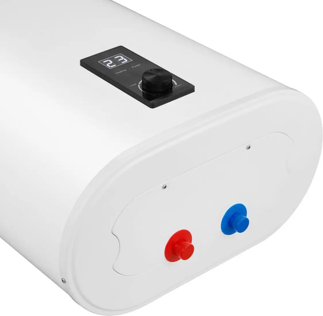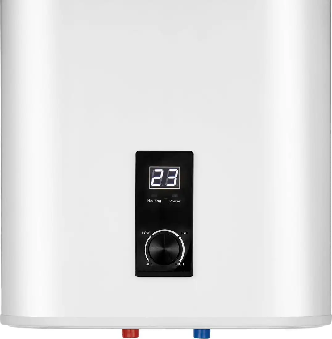 Электрический накопительный водонагреватель Oasis 50D предназначен для дома и идеально подходит для семьи из 3 человек. Он устанавливается вертикально на стену и имеет объем 50 литров, что обеспечивает достаточный запас горячей воды. Модель работает на однофазном электропитании и оснащена мощностью 2 кВт, что помогает быстро нагревать воду до 75°C. Внутренний бак из нержавеющей стали и теплоизоляция сохраняют температуру на длительное время, уменьшая расход энергии. Устройство регулирует температуру и оснащено дисплеем для удобного контроля. Безопасность обеспечивает термостат и устройство защитного отключения (УЗО), а также клапан давления до 7 бар. В комплект входит магниевый анод, монтажный крепеж и инструкция. Размеры водонагревателя — примерно 44х26х82 см, он легко монтируется и не занимает много места.
